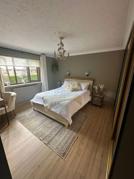 Our customer wanted to bring warmth and coziness into their home, and wood finishes deliver just that. We supplied laminate flooring in the bedroom and entrance hall, creating a homely, inviting atmosphere.