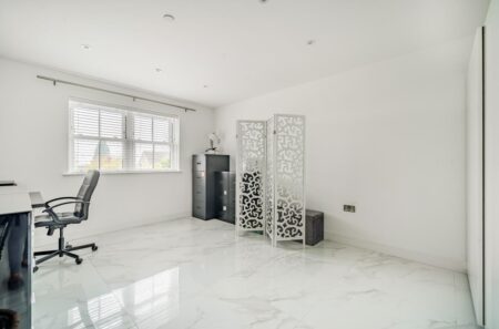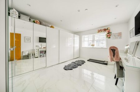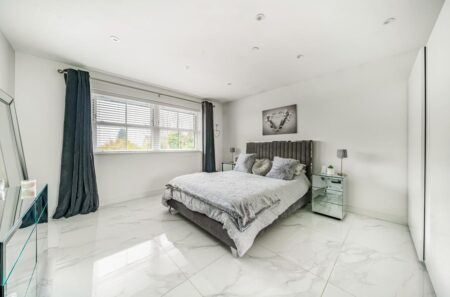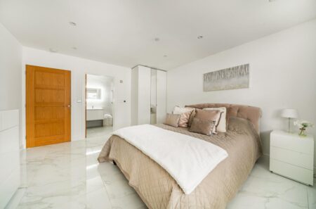 Our high-gloss Carrara tiles flow seamlessly throughout—even extending into the bedrooms. The soft, delicate veining adds just the right amount of character without overpowering the space.