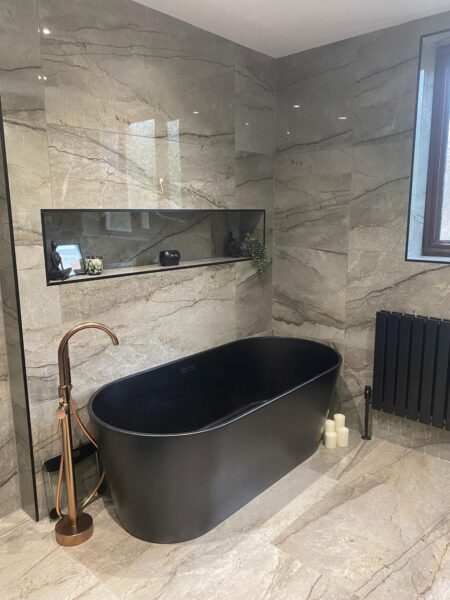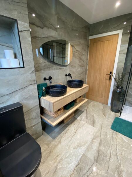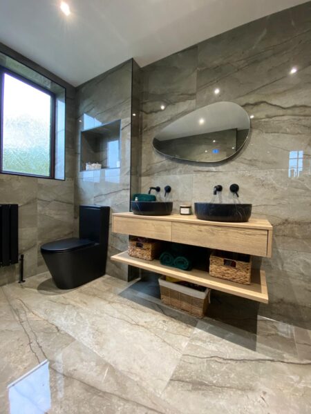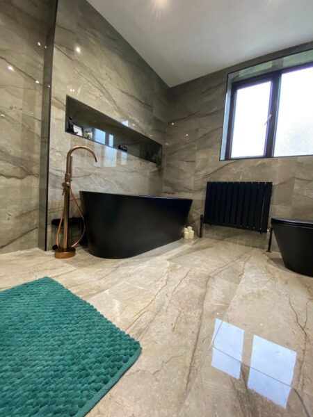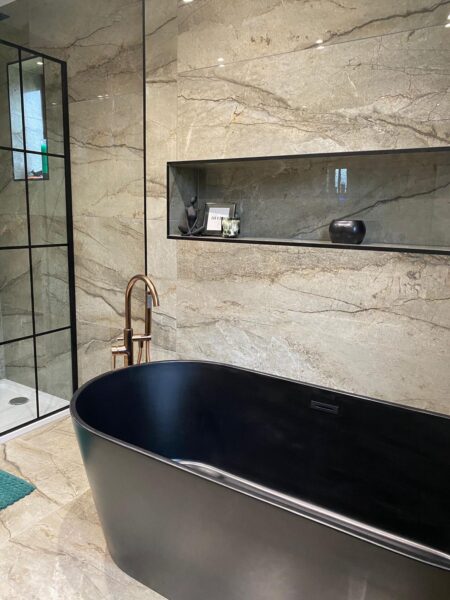 This tile is also available in a slab – the grand size of 2.4m x 1.2m