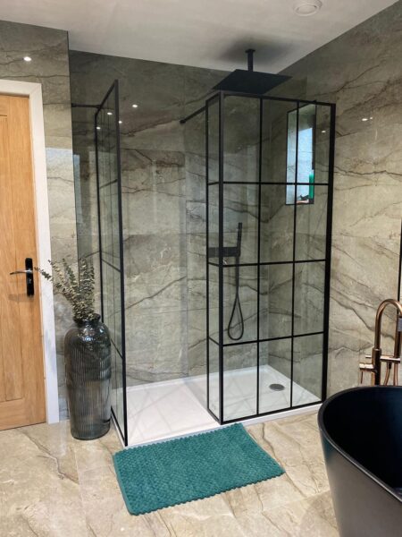 Paired with matt black accessories, the result is a sophisticated, minimalist space where less truly is more.