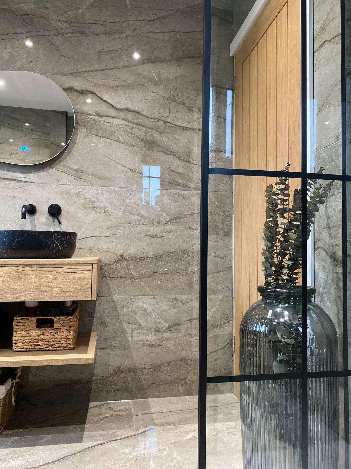 This tile is also available in a slab – the grand size of 2.4m x 1.2m