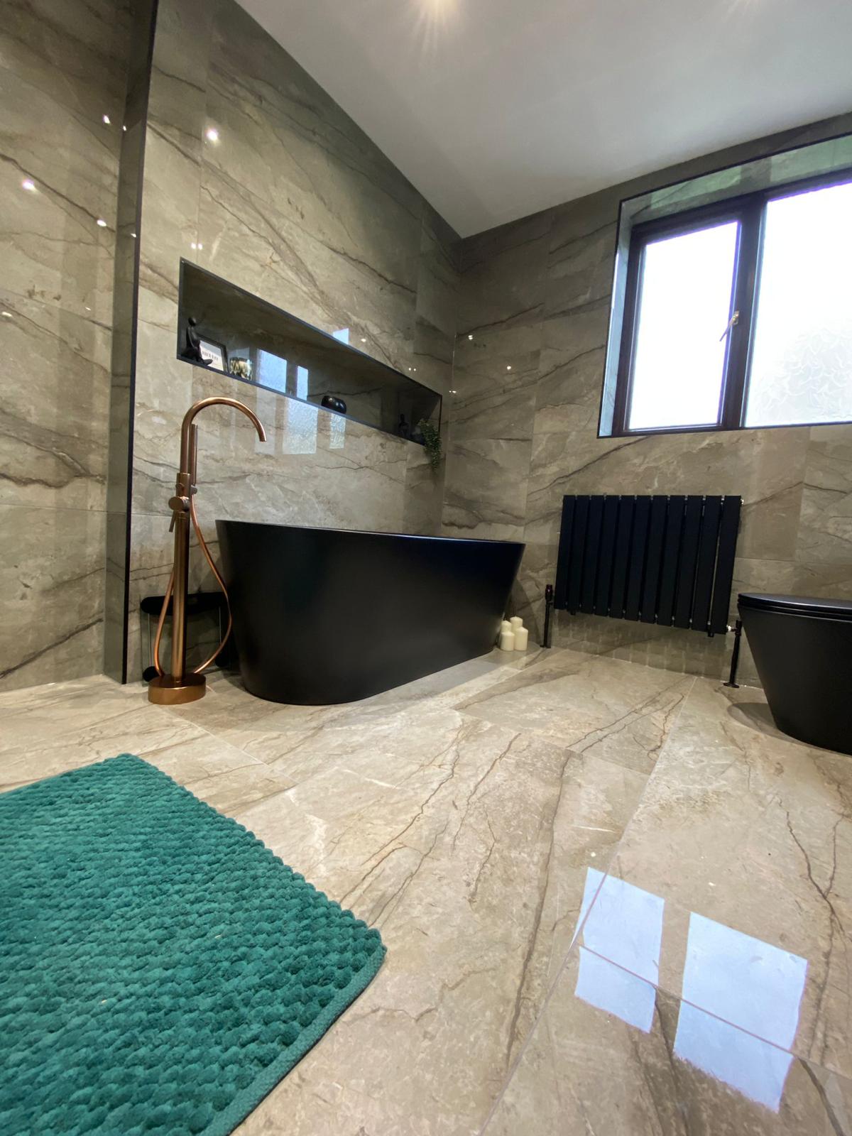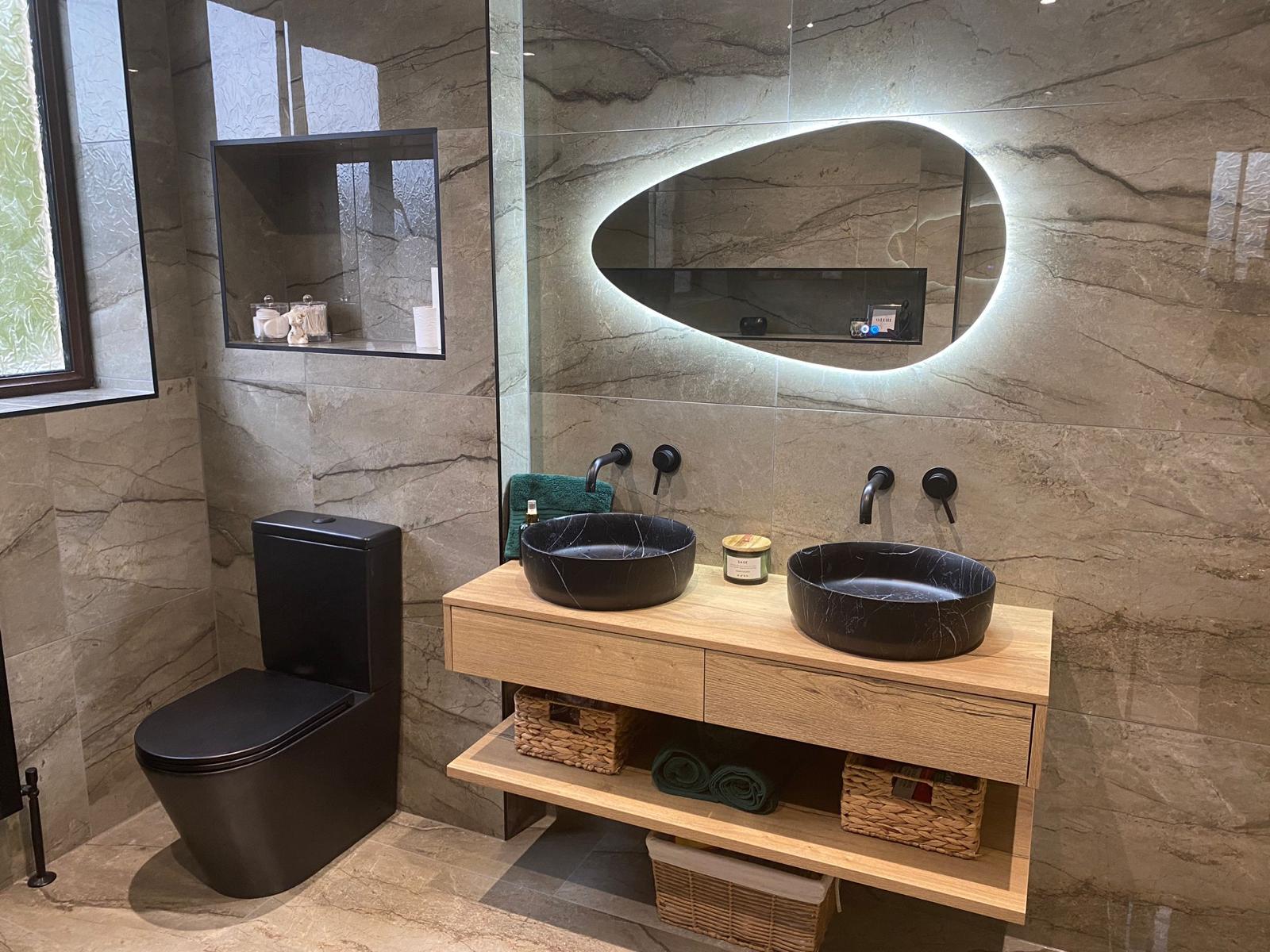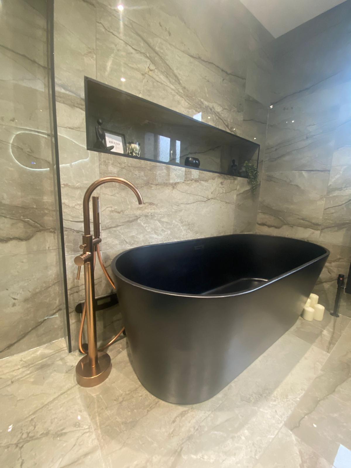 Paired with matt black accessories, the result is a sophisticated, minimalist space where less truly is more.