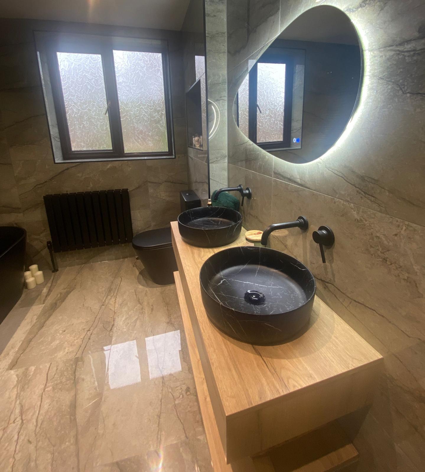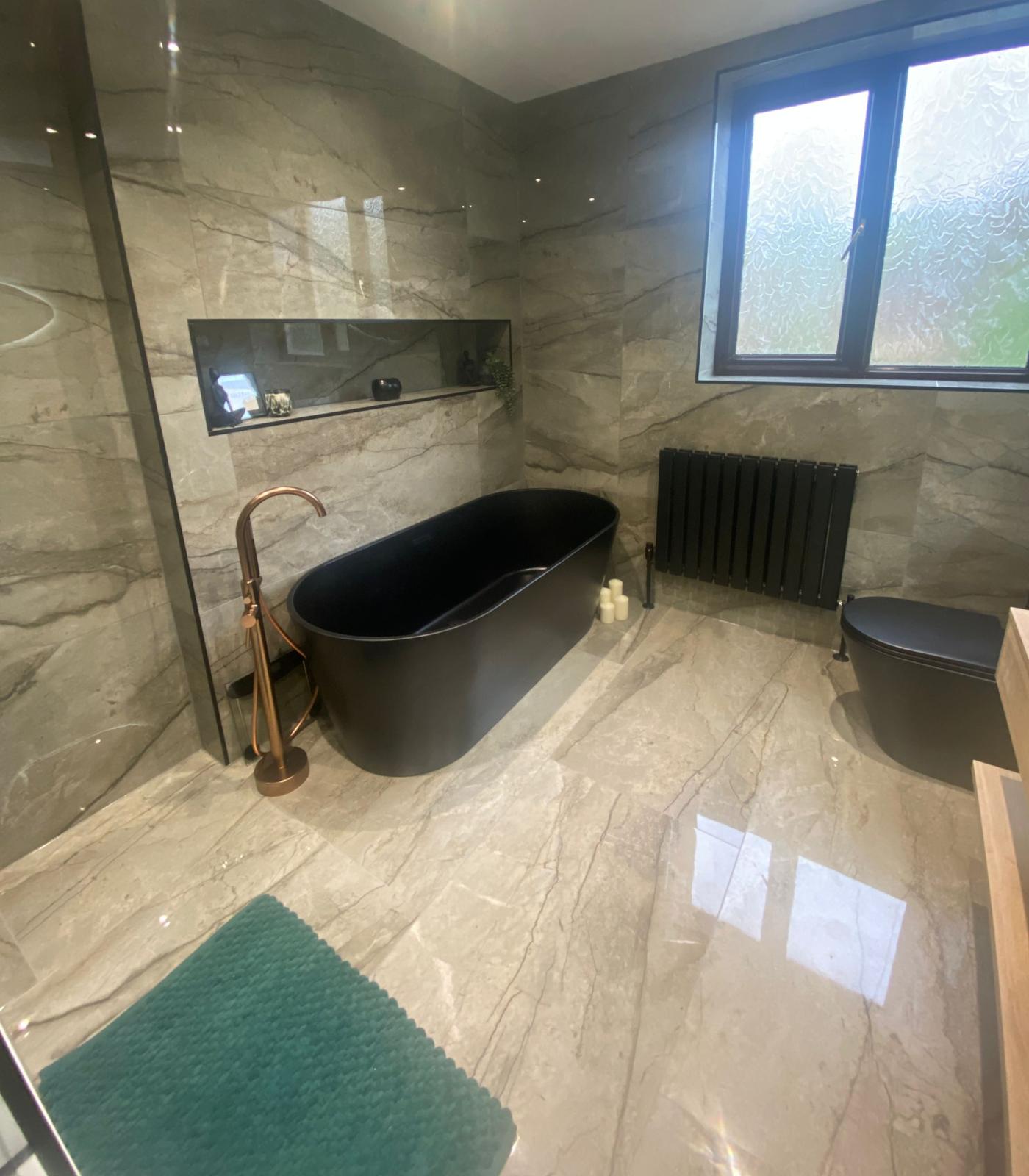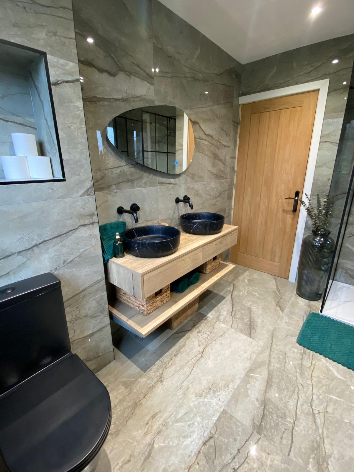 Paired with matt black accessories, the result is a sophisticated, minimalist space where less truly is more.