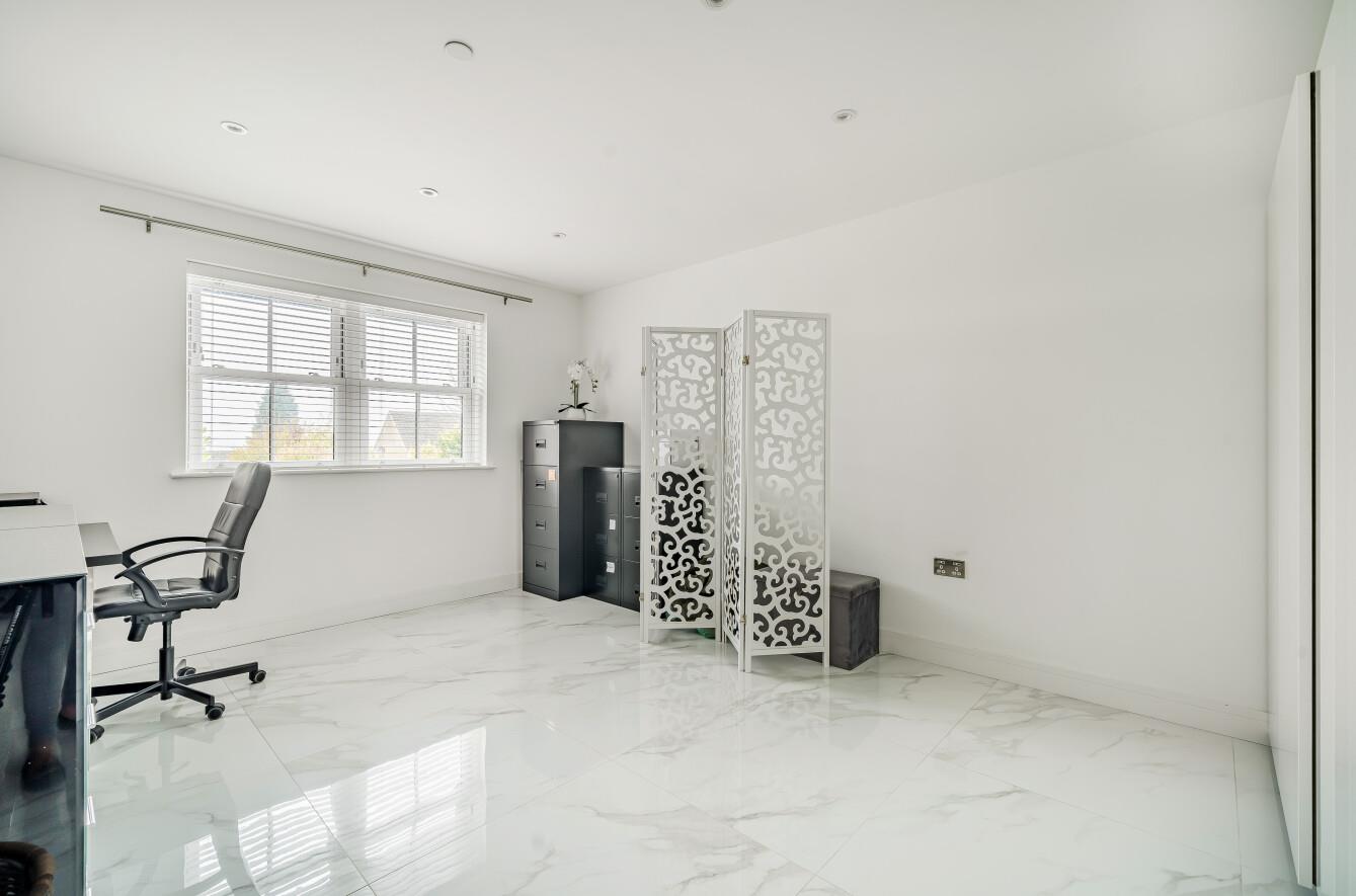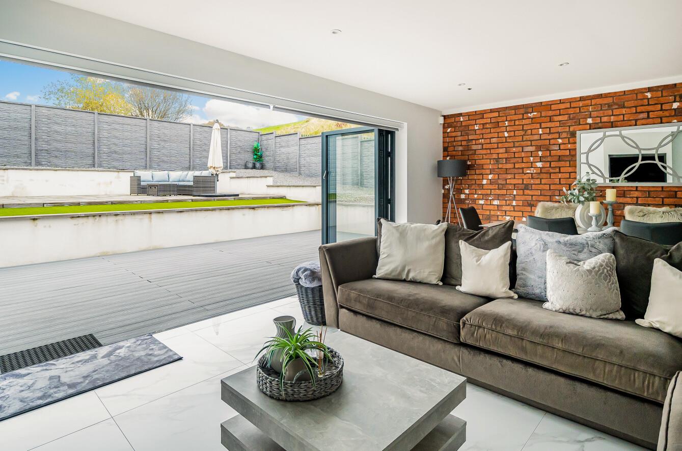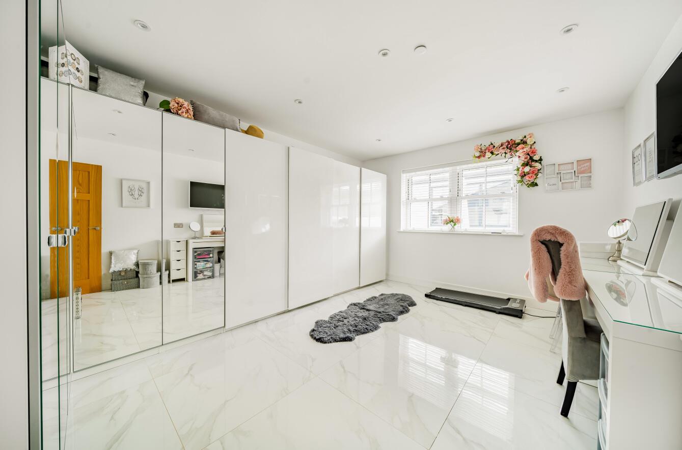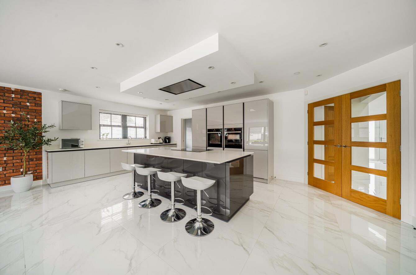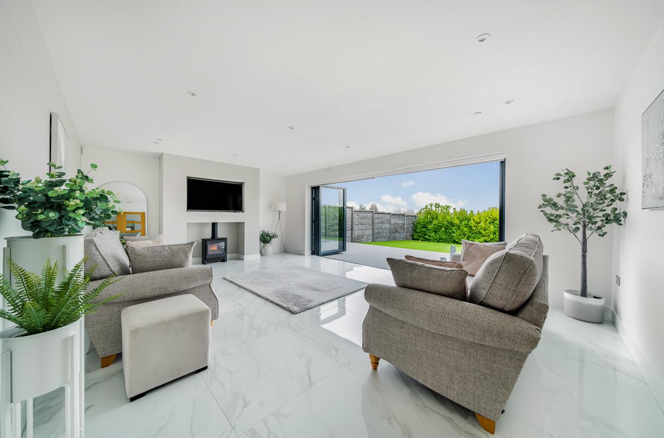 In the bathroom, a light ivory matt tile paired with a coordinating mosaic in the wet room creates a calm, spa-like atmosphere.