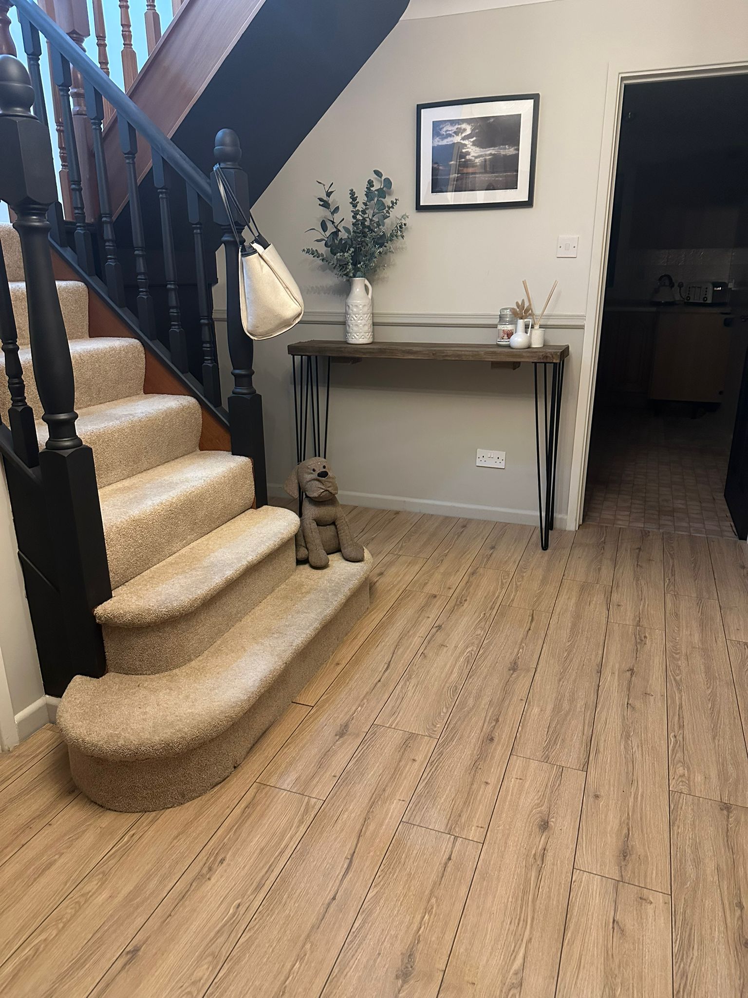 Our customer wanted to bring warmth and coziness into their home, and wood finishes deliver just that. We supplied laminate flooring in the bedroom and entrance hall, creating a homely, inviting atmosphere.