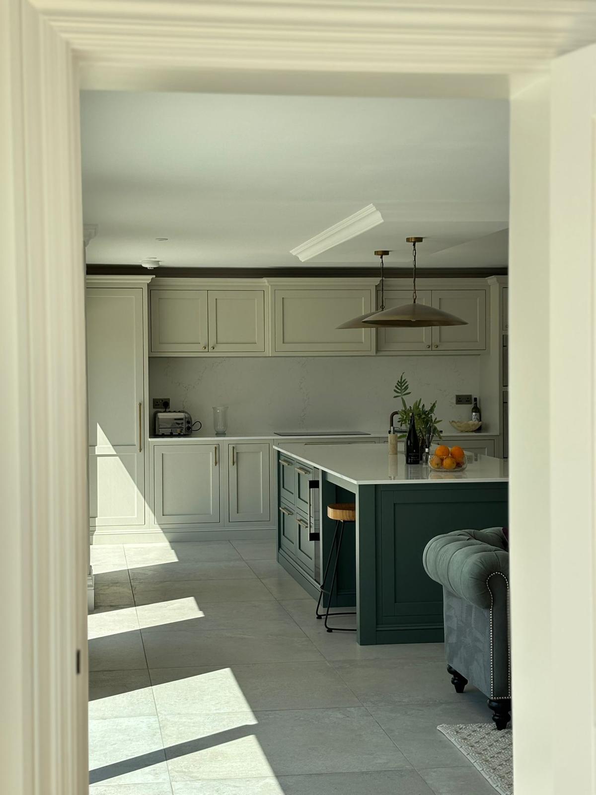 Our 90x90cm Light Ivory porcelain tile is the perfect compliment to this beautiful kitchen.