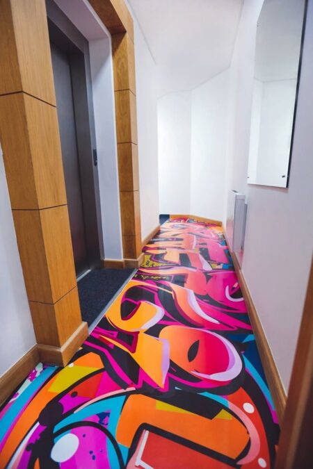 We brought the entrance hall and walkways and life with our funky and colourful resin designs – full of personality, easy to maintain, and perfect for high-traffic hospitality spaces.