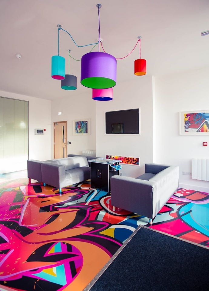 We brought the entrance hall and walkways and life with our funky and colourful resin designs – full of personality, easy to maintain, and perfect for high-traffic hospitality spaces.