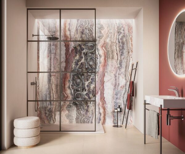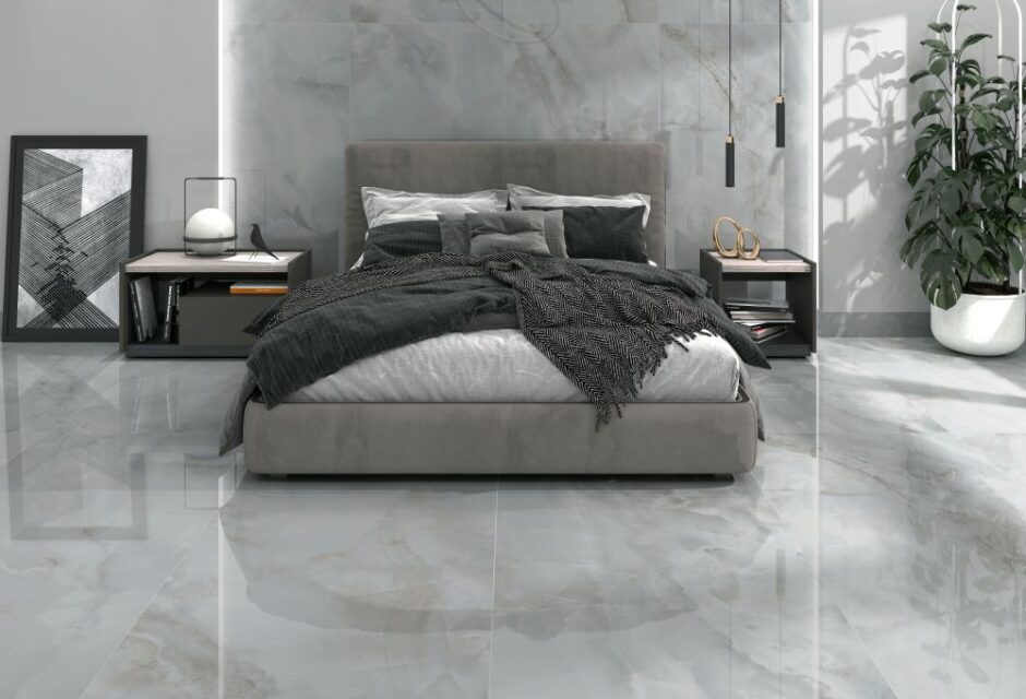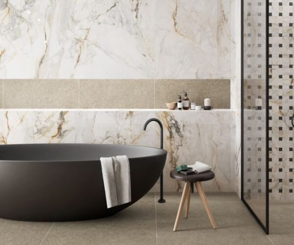 Large format gloss tiles are perfect if you are after a sleek, modern look with a bit of shine. Their bigger size means fewer grout lines, so your walls or floors look cleaner and more seamless.