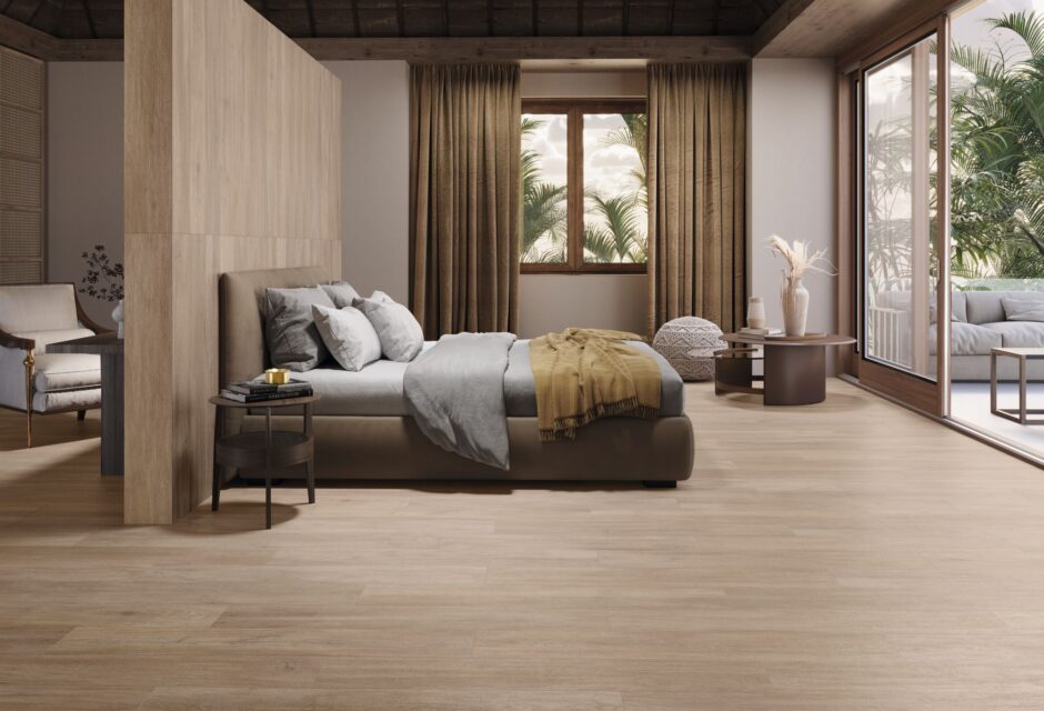 Whether it’s muddy paws, sharp claws, or the wear and tear of busy family life, wood effect tiles offer the same beautiful appeal as timber flooring—without the worry. They are easy to clean, moisture-resistant, and built to last, making them an ideal choice for anyone who wants style without sacrificing durability. Not only are wood effect porcelain tiles a fantastic alternative to real wood flooring, but they’re also incredibly versatile and can be used to create stunning feature walls. Whether you’re looking to add warmth and texture to a living room, bedroom, or even a bathroom, these tiles bring the natural charm of wood.
